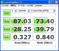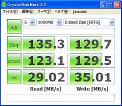 そりゃ150MB以上でるわけないよね。それでもHDDよりはよっぽど速いようだが。