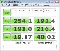 ネットとかで報告されてるのよりシーケンシャルおせー。200いかないの?AHCIモードになってないとしてもこれは・・・