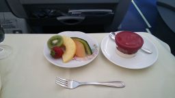 そして機内食。うむ、さすがビジネスクラス。ワインも飲める。ハーゲンダッツのアイスクリームまで。