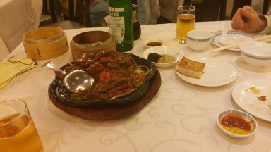 - 今度はハンバーグのミックスグリルに。みんなもいろいろ頼んだのだが、飯がきて・・・前ほど鉄板とか熱くない。6人でいったが、全員のが焼きあがるまで持ってくるのをまってたからか?ちょっと不満。ほんとに夕飯にくるもんじゃないな。