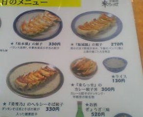 | 「来らっせ」の玉子スープ餃子 4 | 85 | 80 | 玉子スープうまー。酸味あり。 |